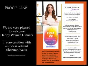 Frog’s Leap is pleased to provide space for this women-centric evening event.